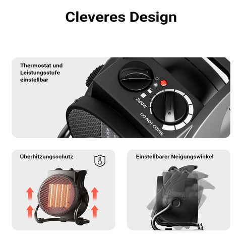 This portable indoor radiant heater warms up your living space in no time and ensures a constant and even room temperature. With this heater, you can heat up any room to the desired temperature, even the basement, the garage or workshop. The powerful 3000 watts heating unit can heat rooms of up to 40 m².